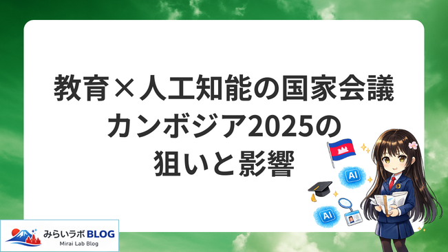 こんにちは!みらいラボのサクラです。 カンボジアで、教育分野における人工知能の活用をテーマにした全国規模の会議「IDRI『AI for Education 2025 National Conference』」が予定されています。 政策(ルール作り)から授業現場、研究発表、展示、若者向... -