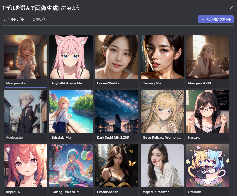 画像生成をするのであればモデルを選択し、そうで無ければ右上の「☓」をクリックして閉じても大丈夫です。