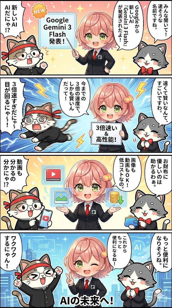 今日は、Googleが最新のAIモデルとして発表した「Gemini 3 Flash」について、基本的な特徴や性能、どこで使えるかまで丁寧にまとめました。