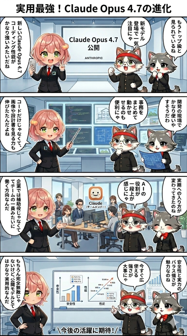競合他社が最前線モデルを積極公開する中で、Anthropicの慎重姿勢が長期的には差別化要素になるのか、それとも機会損失になるのかは今後の市場の評価に委ねられます。Opus 4.7の完成度は、少なくともその問いに対する暫定的な答えを提示しています。