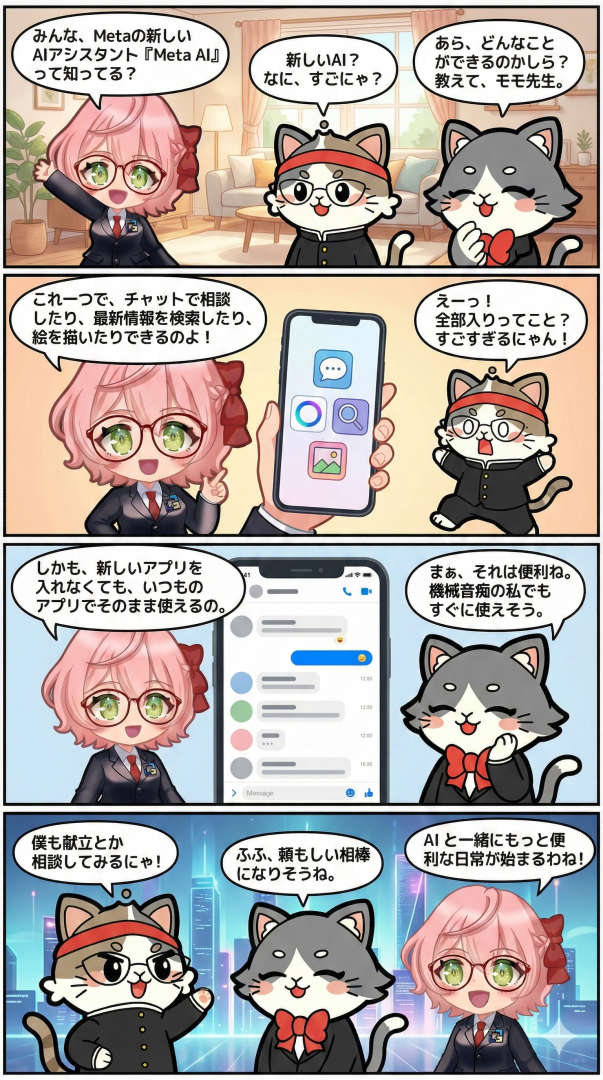今日は、参考サイトの情報をまとめつつ、IT初心者の私なりに「Meta AIって何がすごいの?」「どんなふうに使えそう?」を、できるだけやさしく解説していきます。