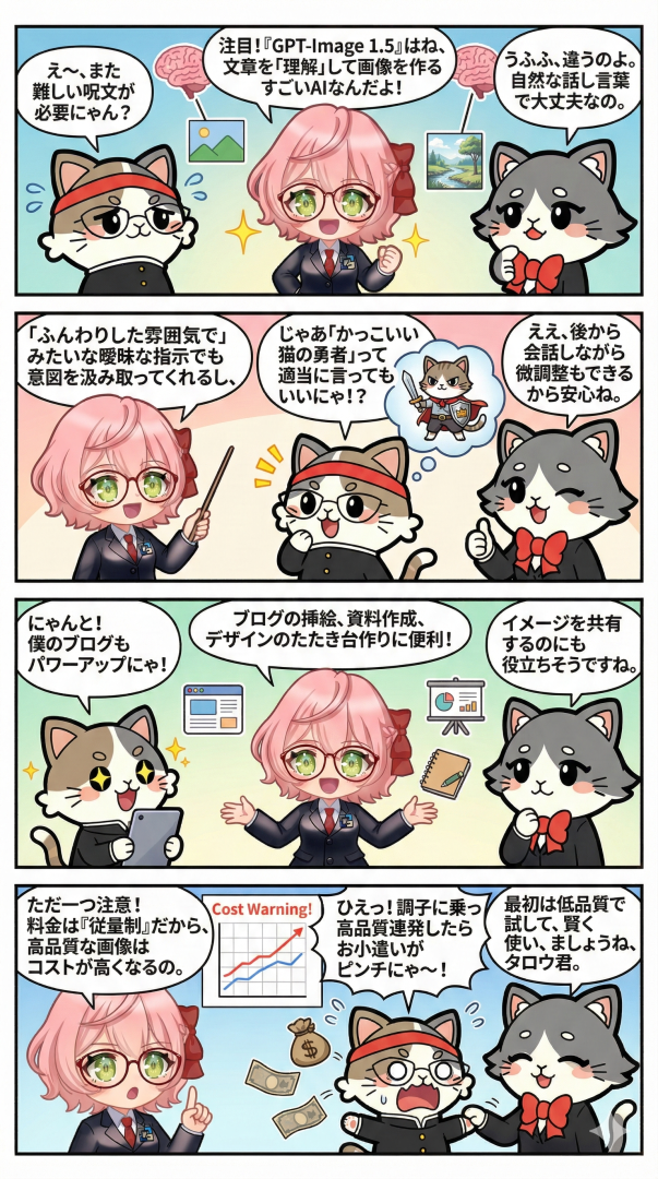 GPT-Image-1.5の登場によって、文章と画像の境界がどんどん近づいてきています。これからは、「文章で考えて、そのまま画像にする」という流れが、より自然になっていきそうです。