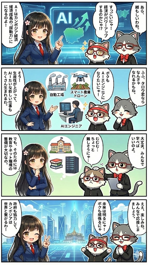 これにより、カンボジアのAI技術の発展が加速し、経済成長に繋がると考えられます。