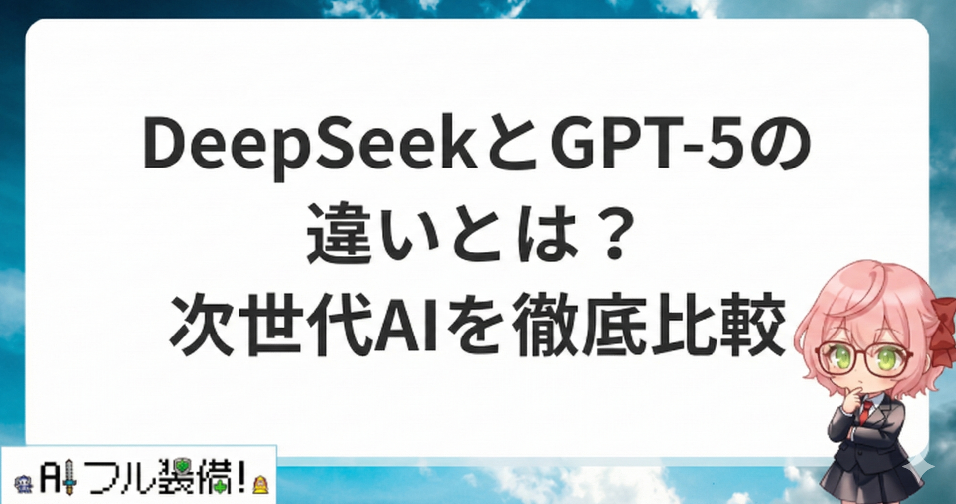 こんにちは!AIフル装備のモモです。 最近、AI関連のニュースや解説記事を読んでいると、「DeepSeek」と「GPT-5」という言葉を本当によく見かけるようになりました。 どちらも次世代の高性能AIとして紹介されていますが、情報が増えるほど「結局この2つは...